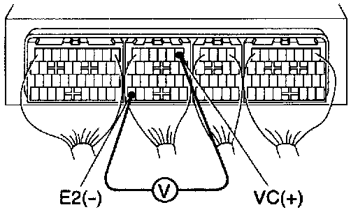 (c) Connect a voltmeter to terminals VC and E2 of the ECU, and measure the power source voltage.