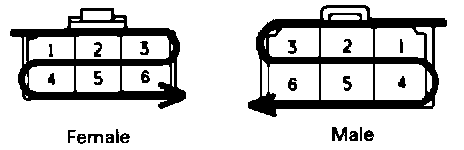 O: Indicates the pin number of the connector. The numbering system is different for female and male connectors.