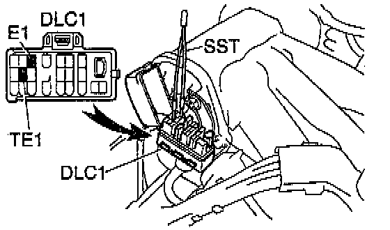 (a) Using a jumper wire (or SST), connect terminals TE1 and E1 of the DLC1.
