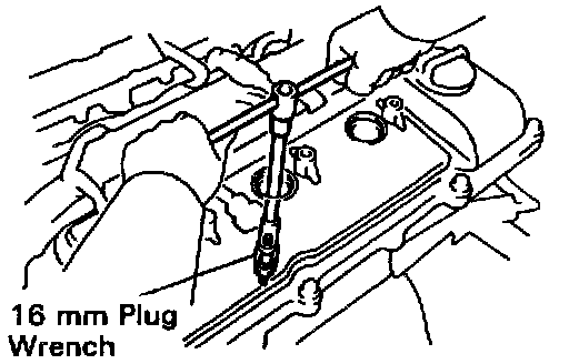 Using a 16 mm plug wrench, remove the 6 spark plugs from the RH and LH cylinder heads.