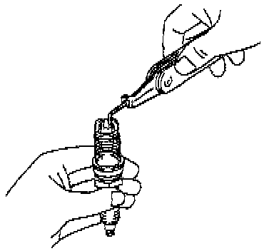 NOTICE: If adjusting the gap of a new spark plug, bend only the base of the ground electrode. Do not touch the tip. Never attempt to adjust the gap on the used plug.