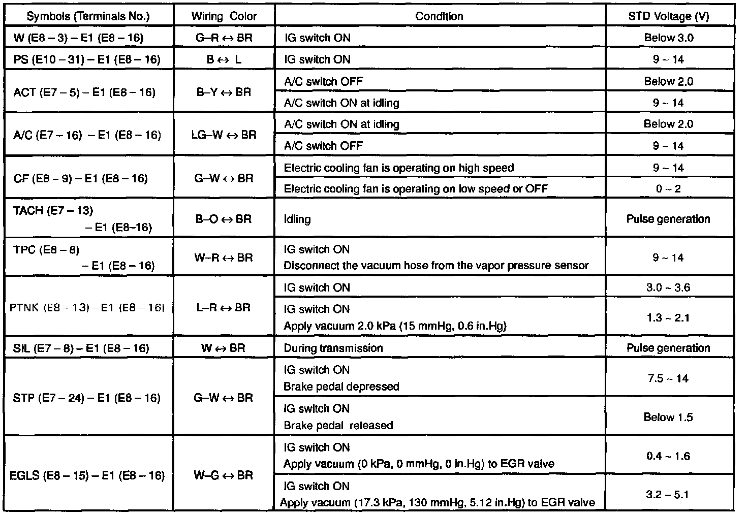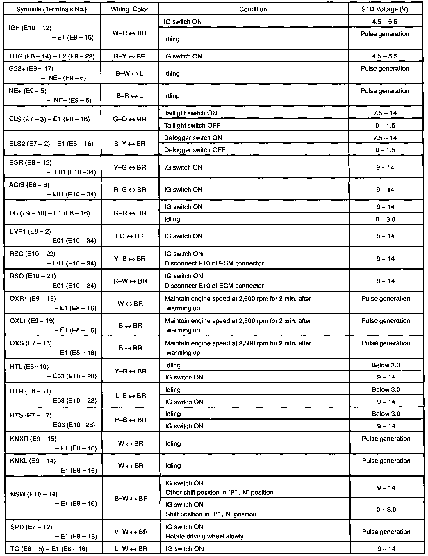 Standard Values Of ECM Terminals Chart 3 Of 3: