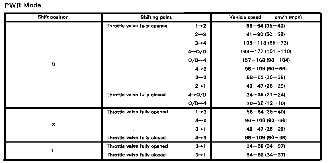 A350E 4-spd A/T, Shift Power Mode (PWR):