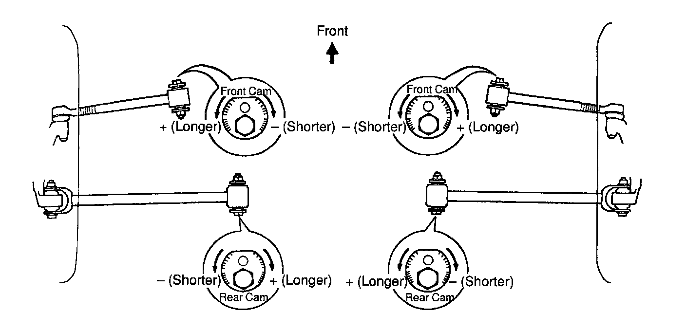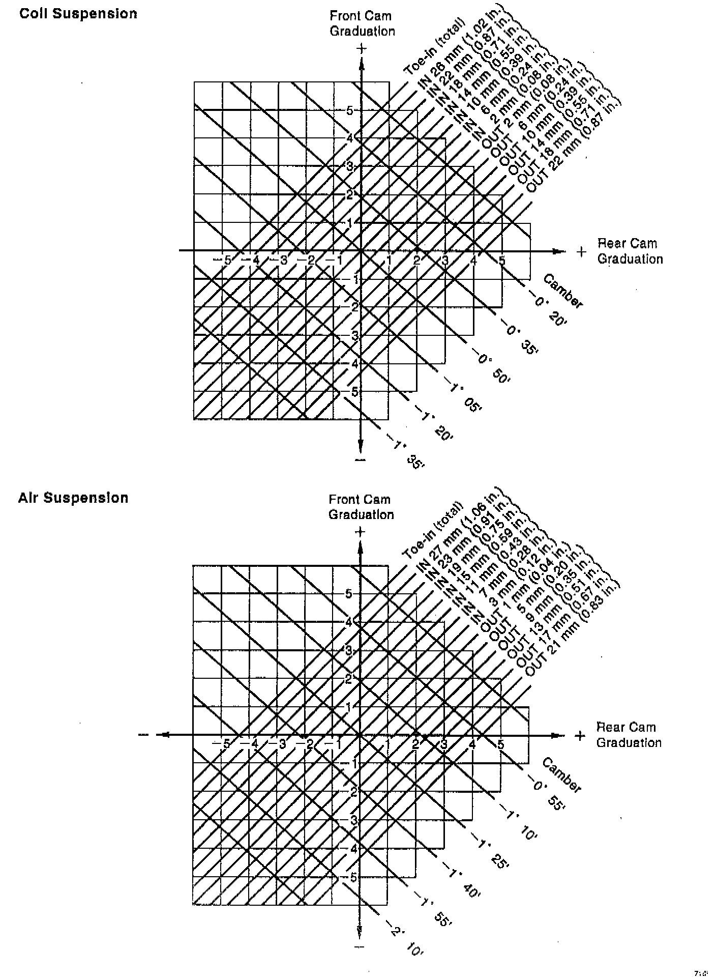 2. As shown the illustration, from the graph the amounts by which the front and/or rear cam are to be adjusted. Amount to turn adjusting cam (by graduation):