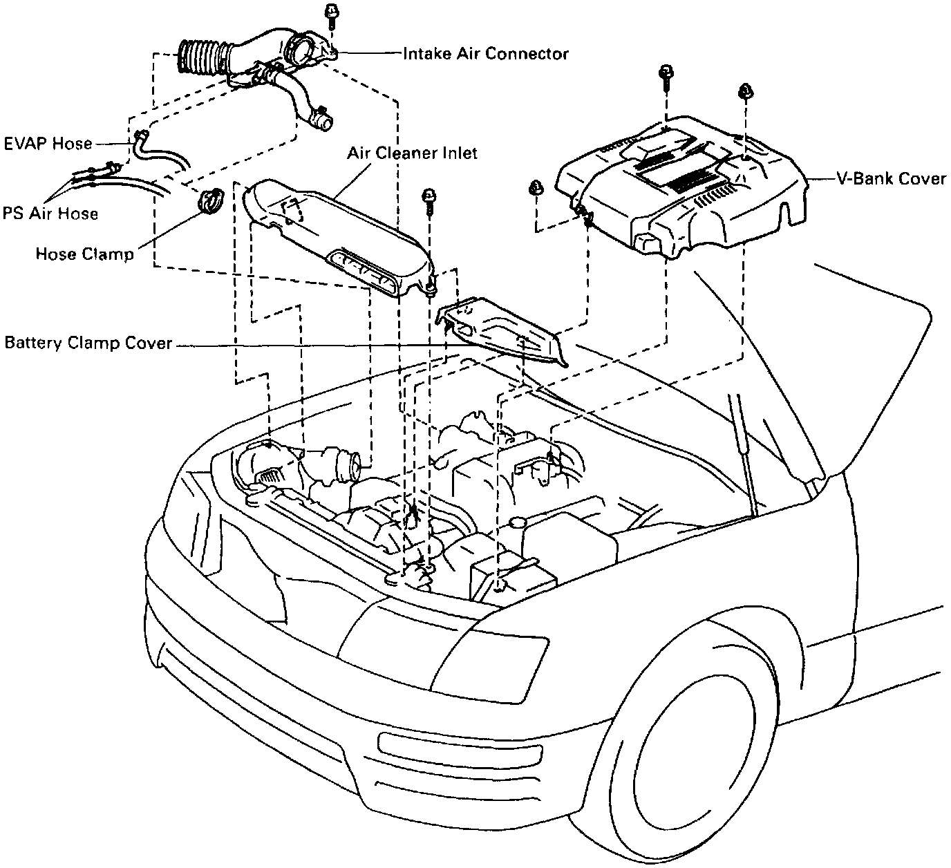3. REMOVE BATTERY CLAMP COVER AND AIR CLEANER INLET