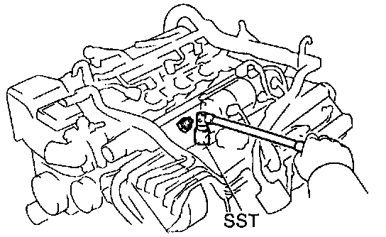 (b) Using SST, remove the 2 knock sensors. SST 09816-30010