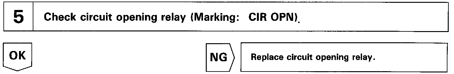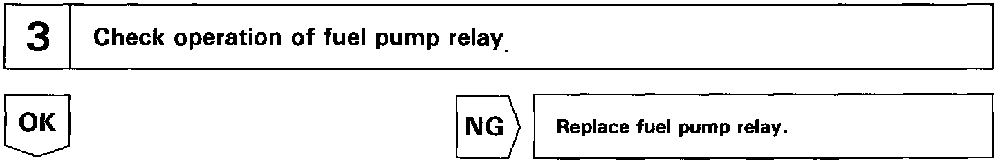 When the STA signal and NE signal are input to the ECM, Tr1 is turned ON, current flows to coil of the circuit opening relay, the relay switches on, power is supplied to the fuel pump and the fuel pump operates. While the NE signal is generated (engine running), the ECM keeps Tr1 ON (circuit opening relay ON) and the fuel pump also keeps operating.
