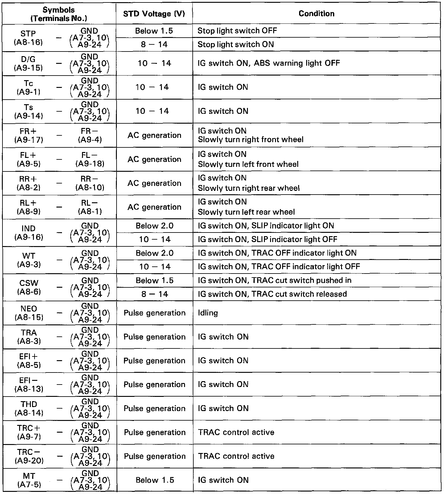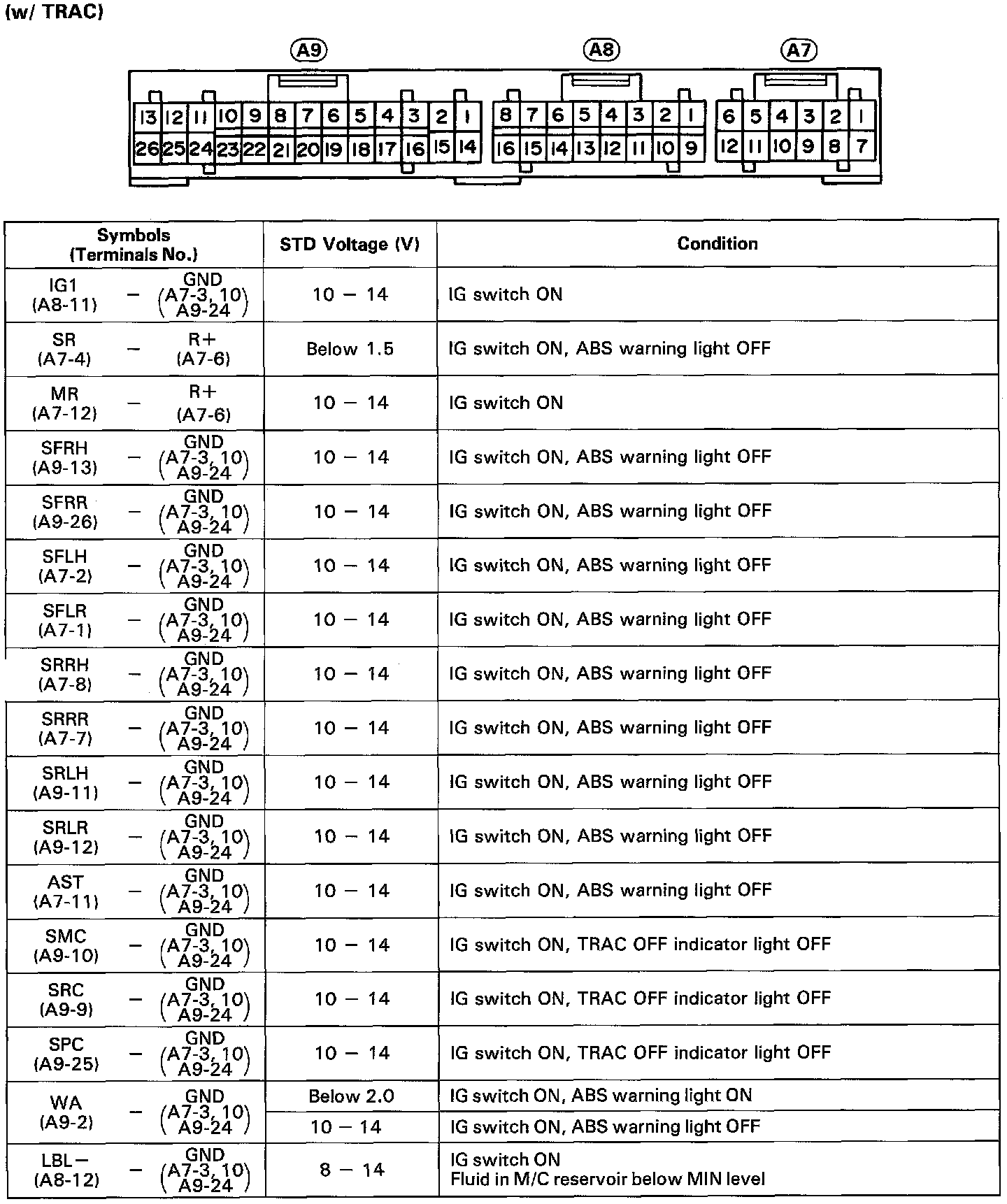 Anti-Lock Brake System (ABS) W/ TRAC, Standard Values Of ECU Terminals Part 1 Of 2: