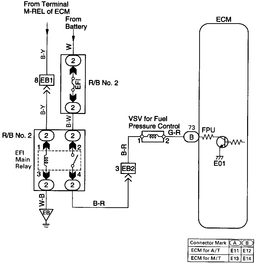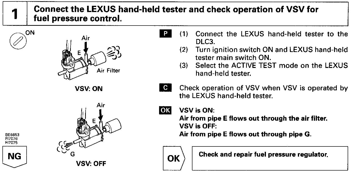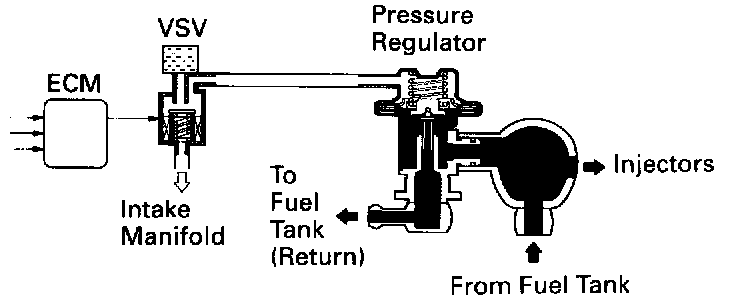 The ECM turns on a VSV (Vacuum Switching Valve) to draw the air into the diaphragm chamber of the pressure regulator if it detects that the temperature of the engine coolant is too high during engine starting.