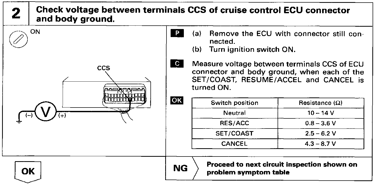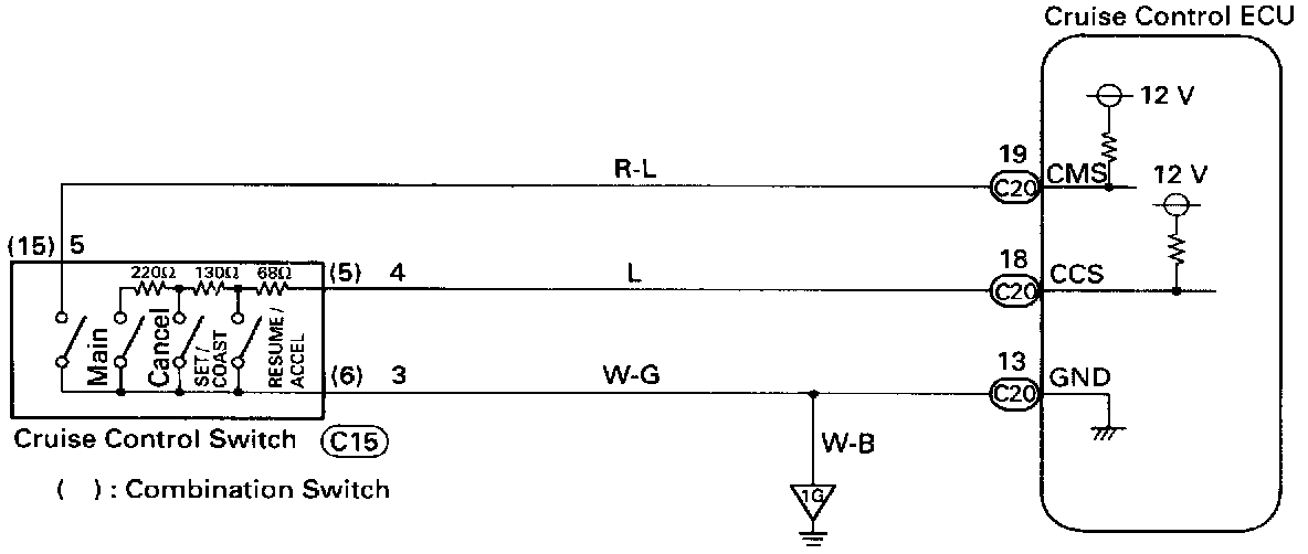 This Circuit carries the SET/COAST RESUME/ACCEL and CANCEL signals (each voltage) to the ECU.