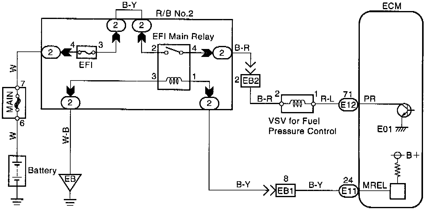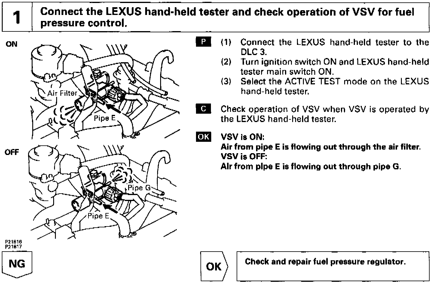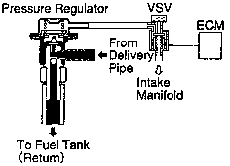 The ECM turns on a VSV (Vacuum Switching Valve) to draw the air into the diaphragm chamber of the pressure regulator if it detects that the temperature of the engine coolant is too high during engine starting.