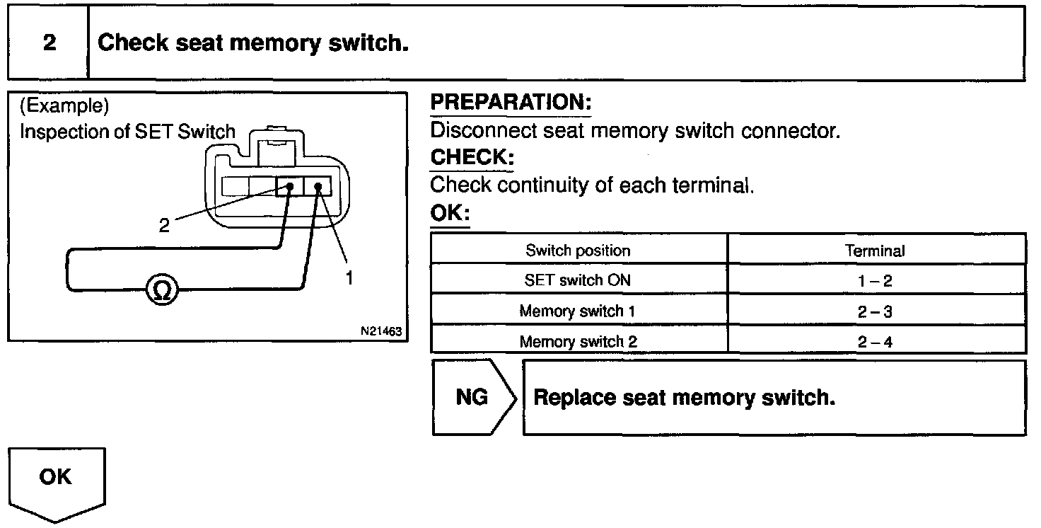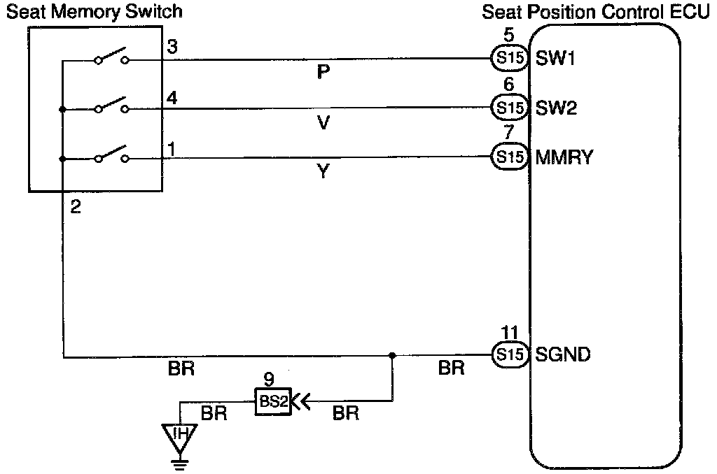 Seat memory switch send memory and return signals to the seat position control ECU.