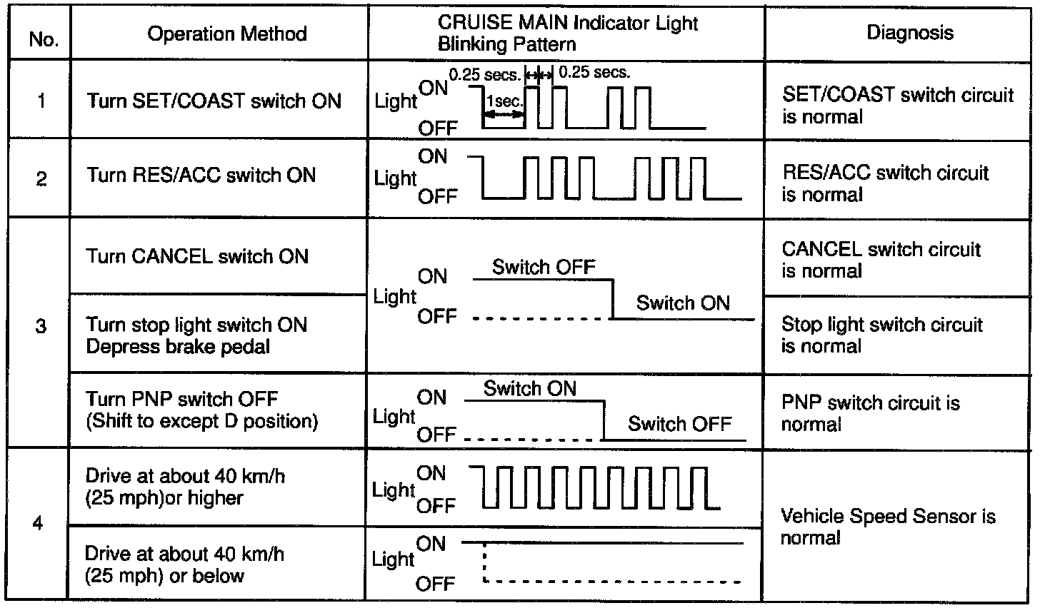 (f) Read the blinking pattern of the CRUISE MAIN indicator light.