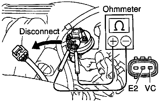 (2) Using an ohmmeter, measure the resistance between the terminals VC and E2.