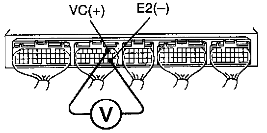 (3) Connect a voltmeter to terminals VC and E2 of the ECU, and measure the power source voltage.