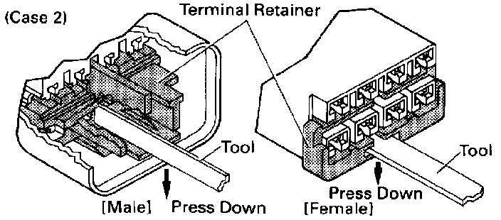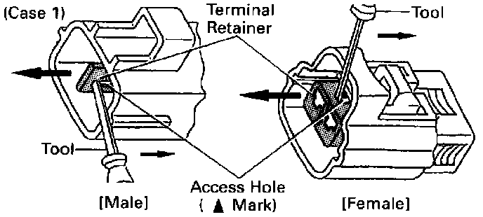 Type which cannot be pulled as far as Power Lock insert the tool straight into the access hole of terminal retainer as shown.