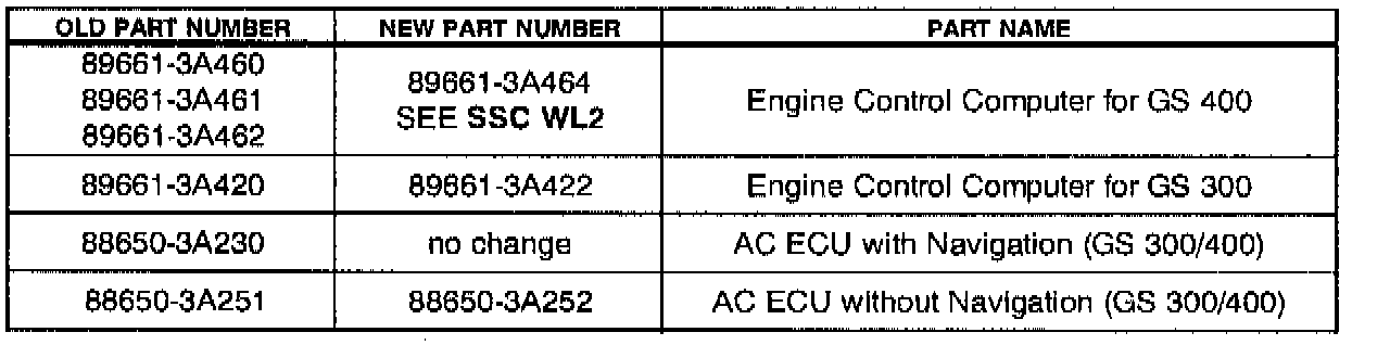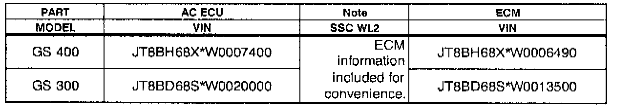 1. If a 1998 model GS produced prior to the VIN indicated in the Production Change Information table exhibits any of the symptoms described, replace the AC ECU with an improved one as indicated in the parts information table.