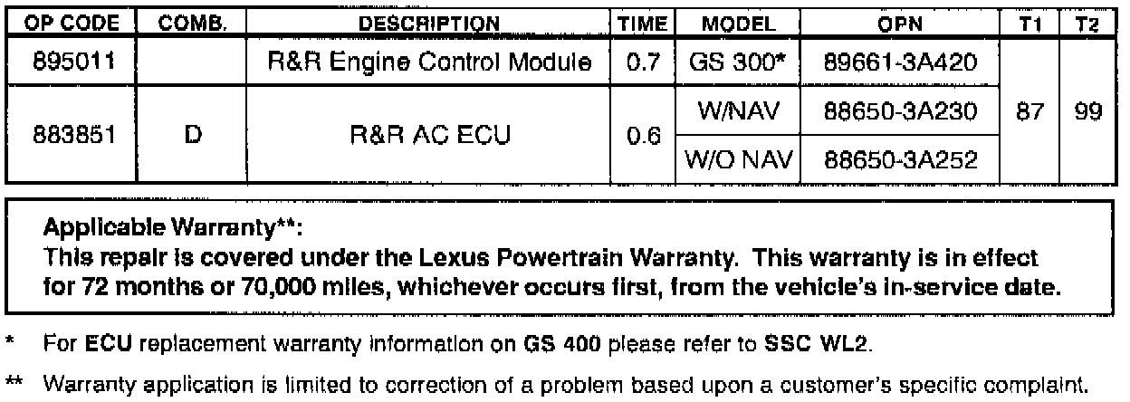 ECM may have been replaced with current production part for SSC WL2. Always verity involvement/completion of SSC WL2 prior to proceeding with ECM replacement. lithe vehicle is involved In SSC WL2, but does not show completion, follow SSC WL2 procedures for ECM replacement.