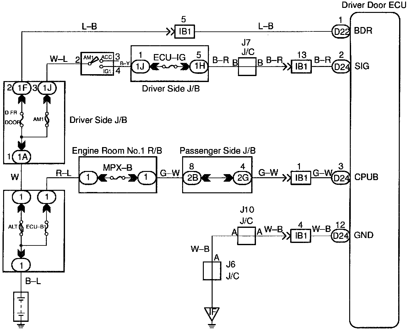 This circuit provides power to operate the driver door ECU.