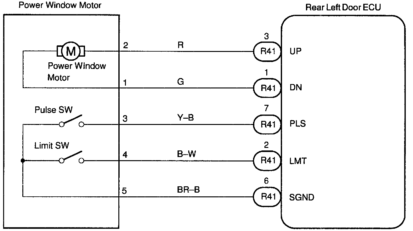 Jam protection limit switch is built-in the power window motor. This switch functions to turn "OFF" before the top dead center, and ECU reads this "OFF signal resulting in closing the window fully.