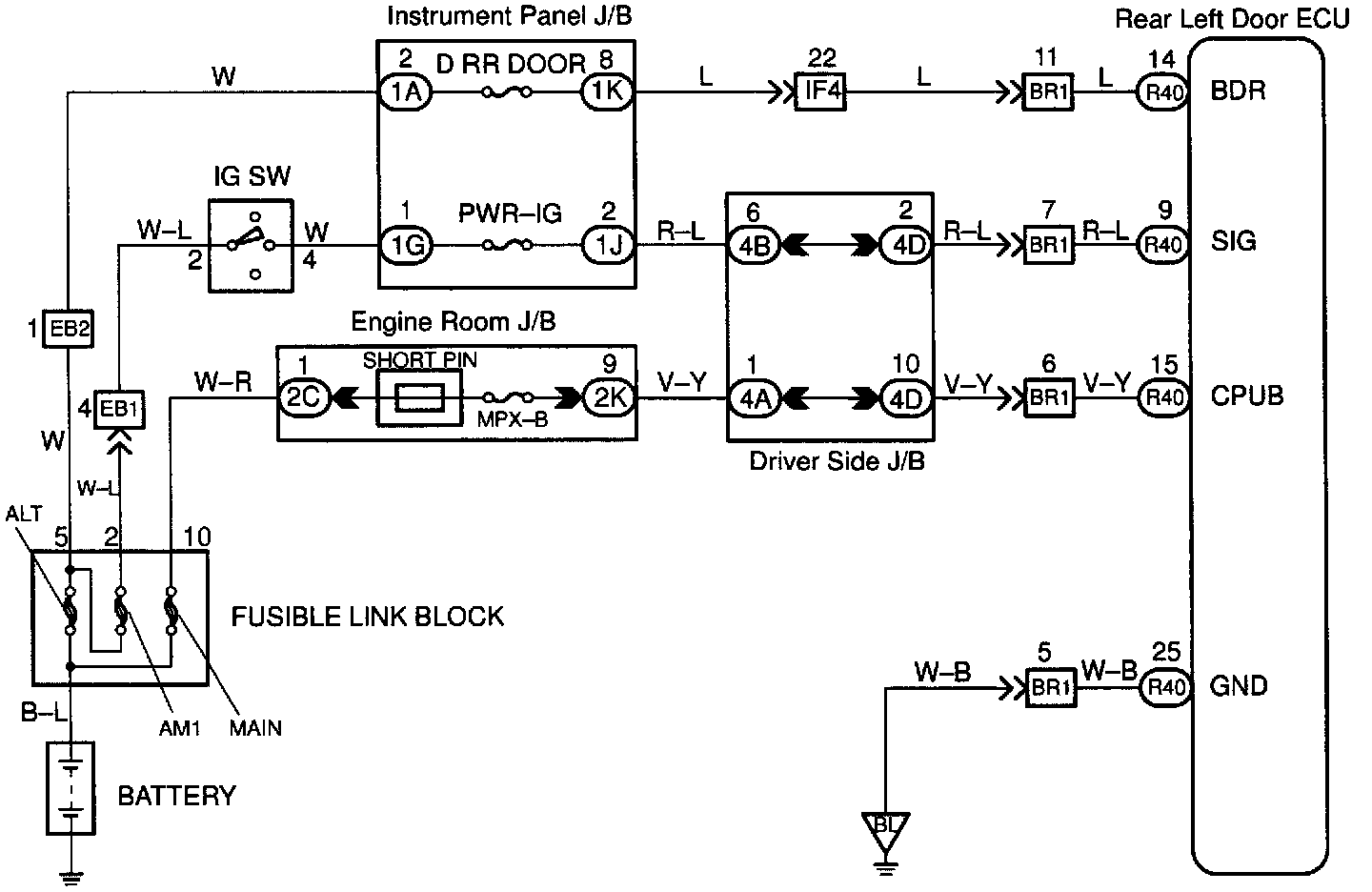 This circuit provides power to operate the rear left door ECU.