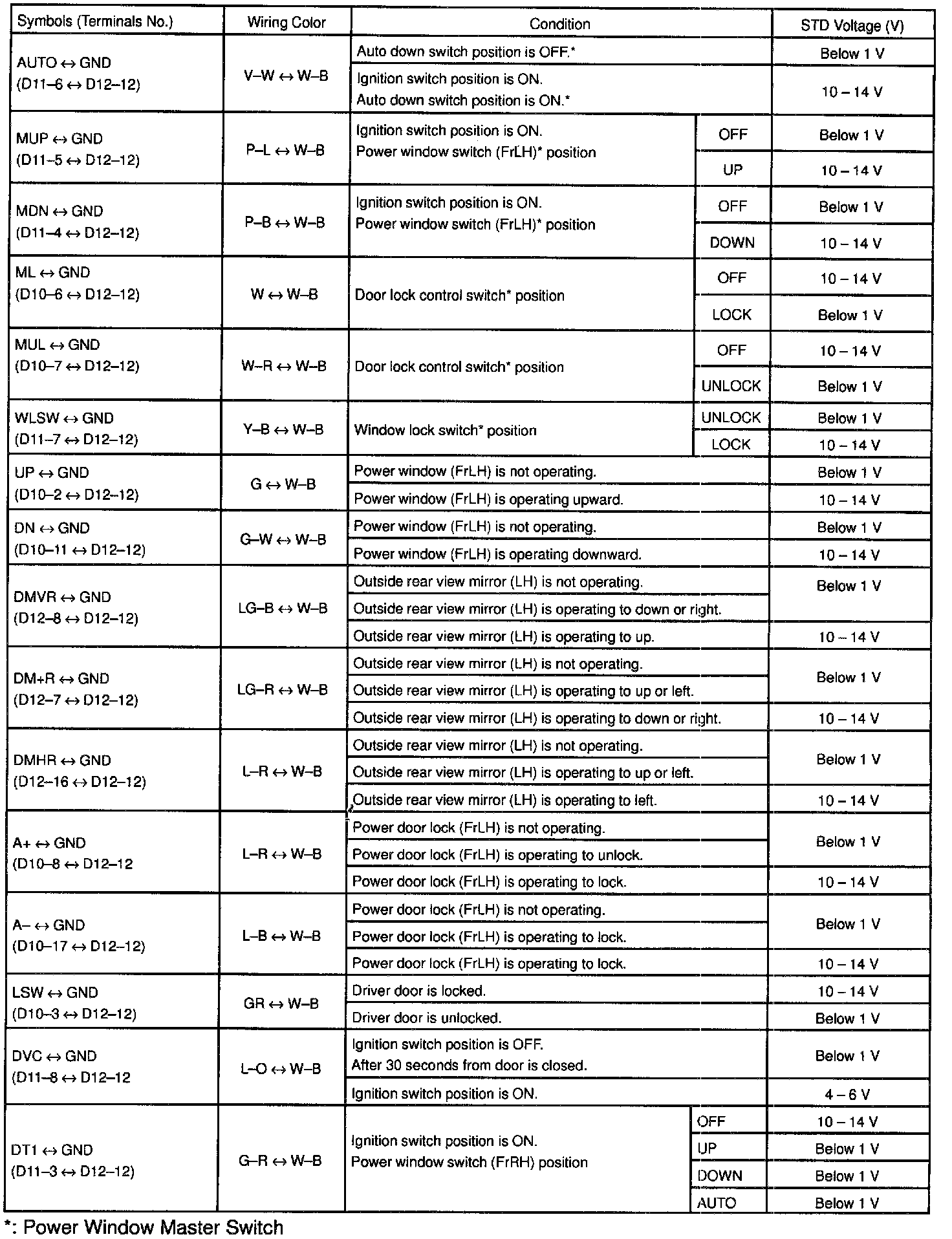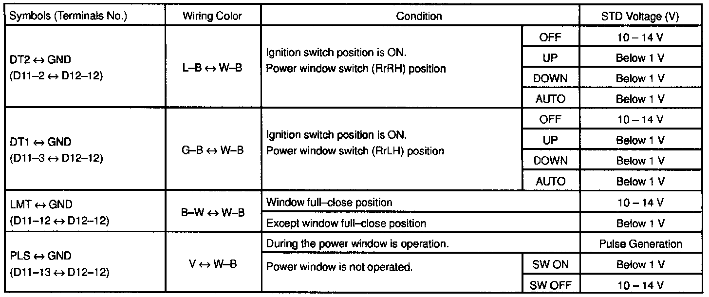 Pinout Values and Diagnostic Parameters