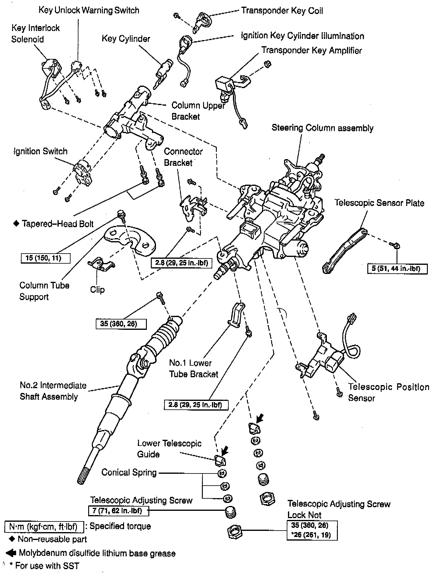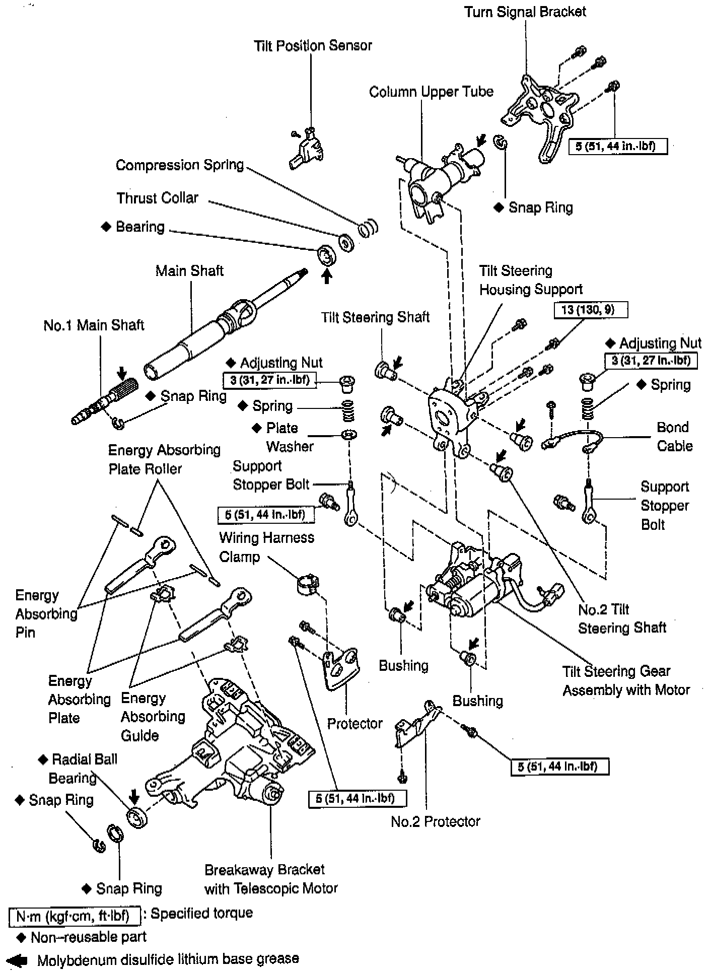Exploded View Of Power Tilt And Power Telescopic Steering Column (Part 1 Of 3):