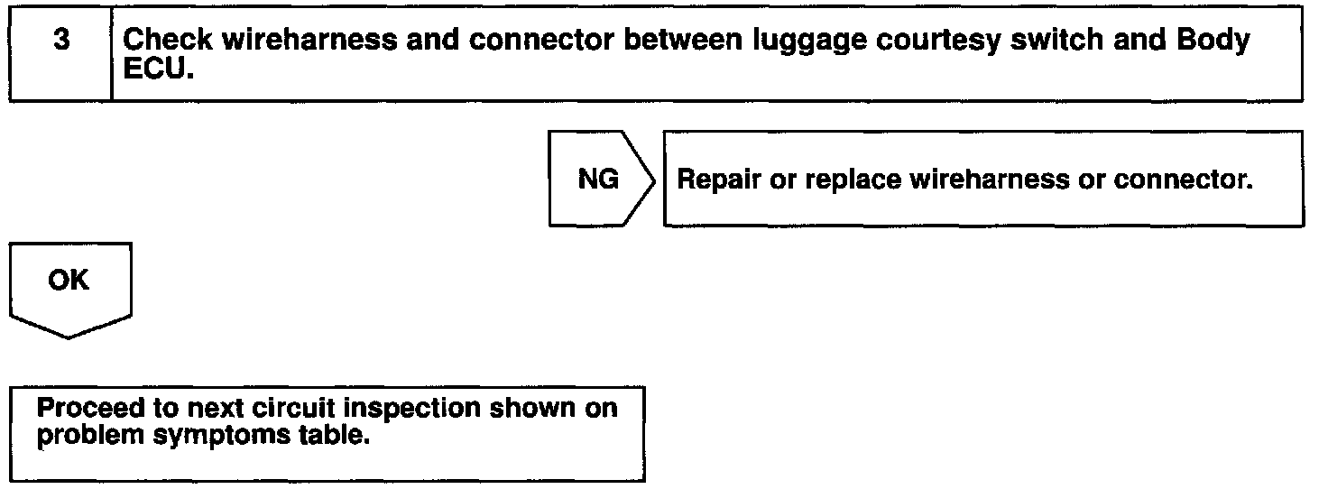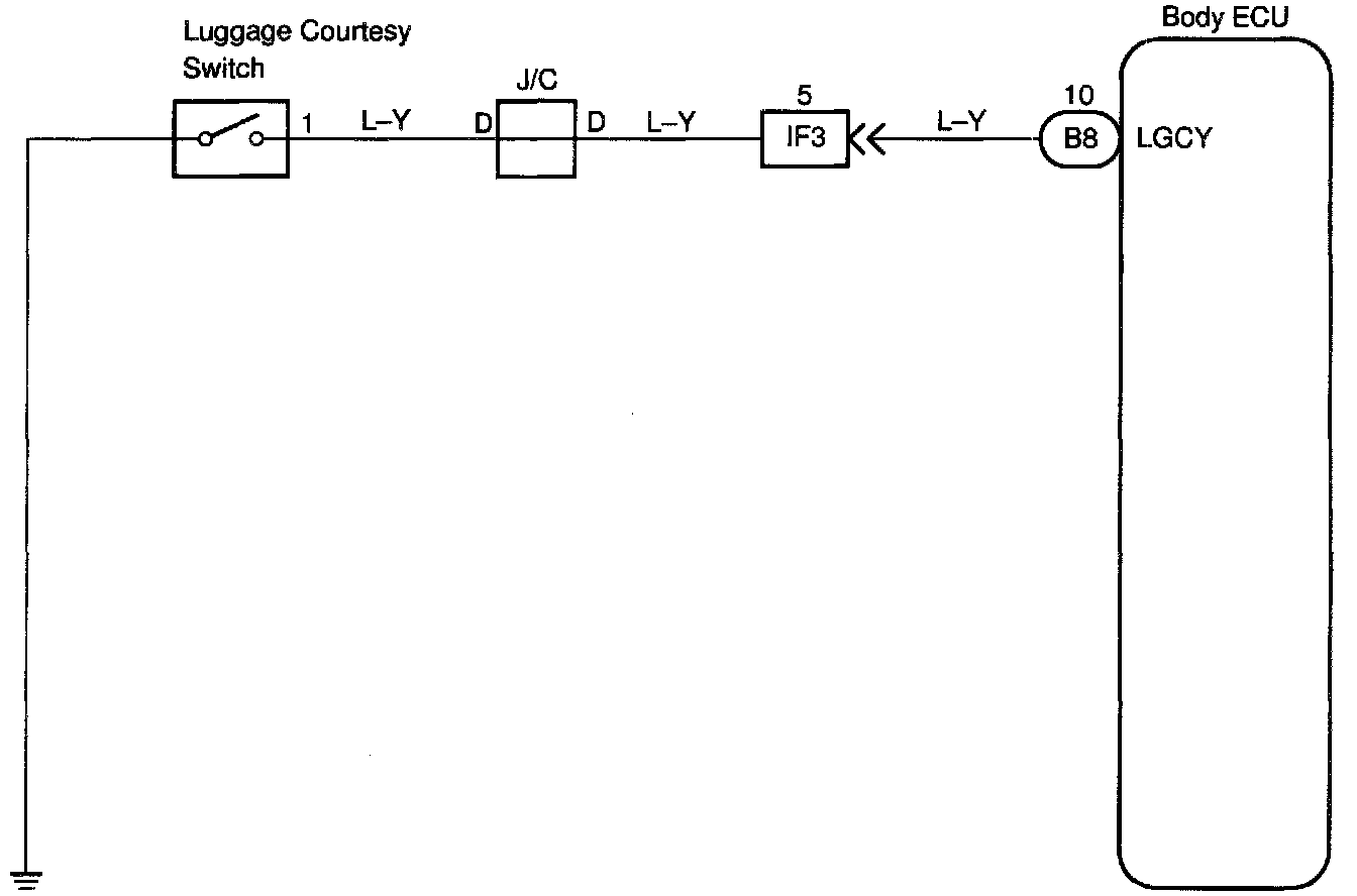 The luggage courtesy switch goes on when luggage compartment door is opened and goes off when luggage compartment door is closed.