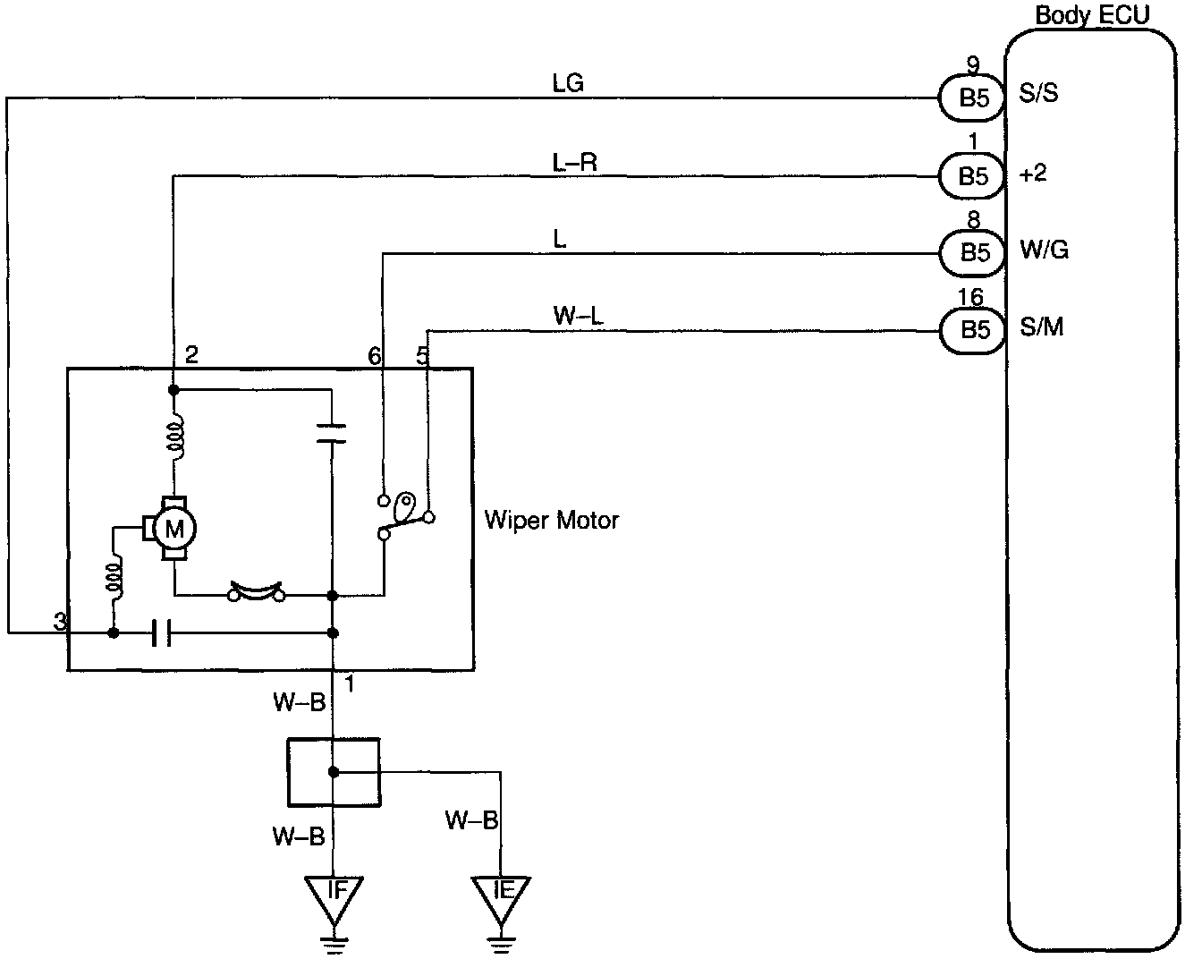 Wiper motor is controlled by the Body ECU. Even CPU is in the failure, its circuit structure enables to operate the wiper with "High" mode.