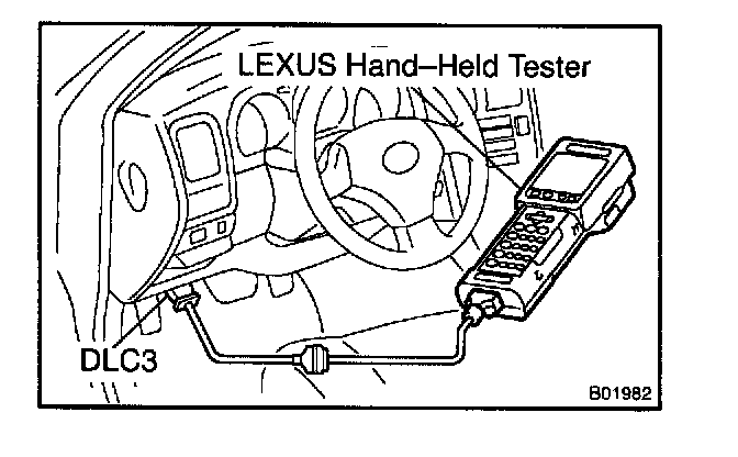 HINT: If your display shows "UNABLE TO CONNECT TO VEHICLE" when you have connected the cable of the OBD II scan tool or LEXUS hand-held tester to DLC3, turned the ignition switch ON and operated the scan tool, there is a problem on the vehicle side or tool side.