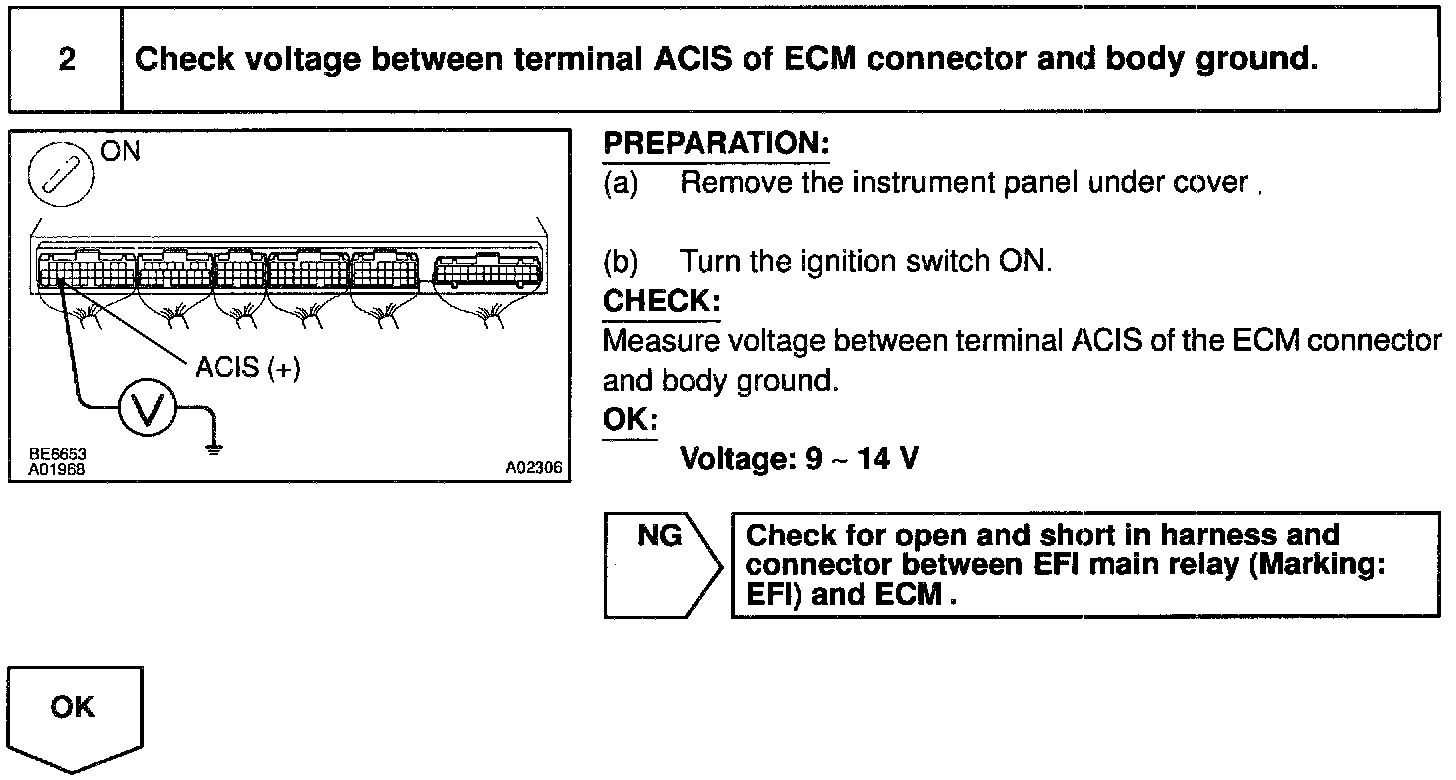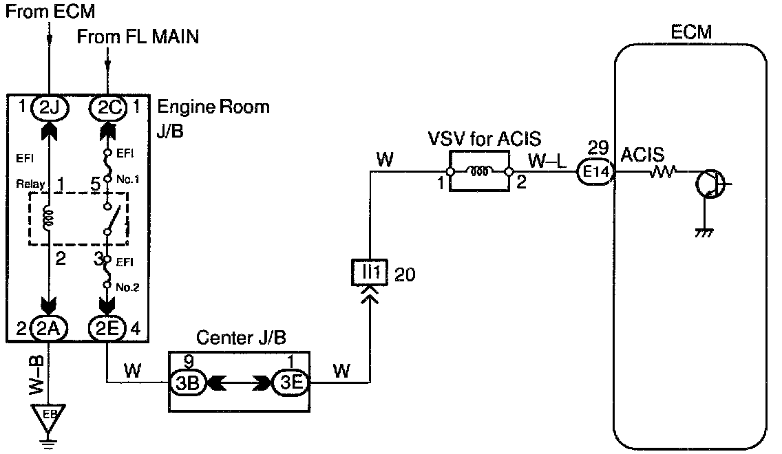 This circuit opens and closes the ACIS (Acoustic Control Induction System) Valve in response to the engine load in order to increase the intake efficiency.