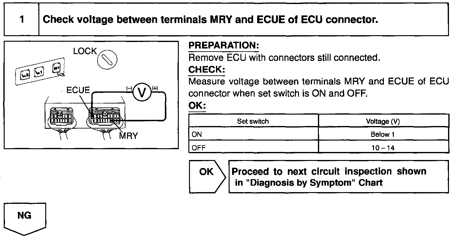 CIRCUIT DESCRIPTIONWhen switch 1 or 2 is pushed while set switch is being pushed ON in memory operation, a signal is sent to the ECU to memorize the present positions of the tilt, telescopic, seat and mirror.