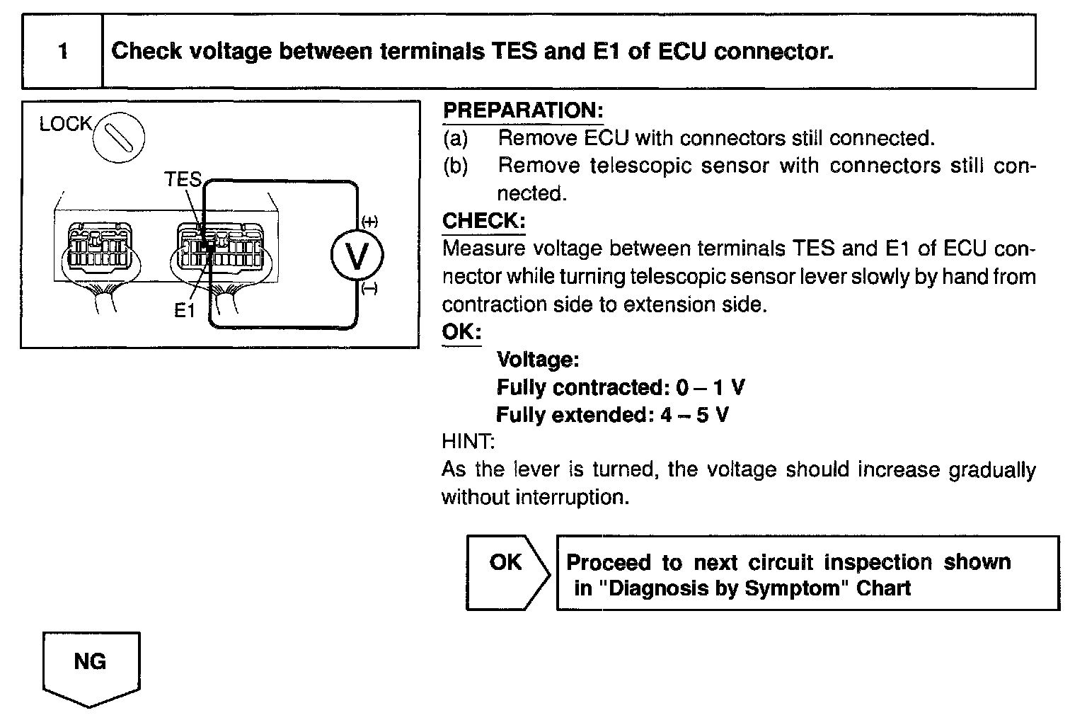 The voltage at terminal TES varies with position and is input to the ECU.
