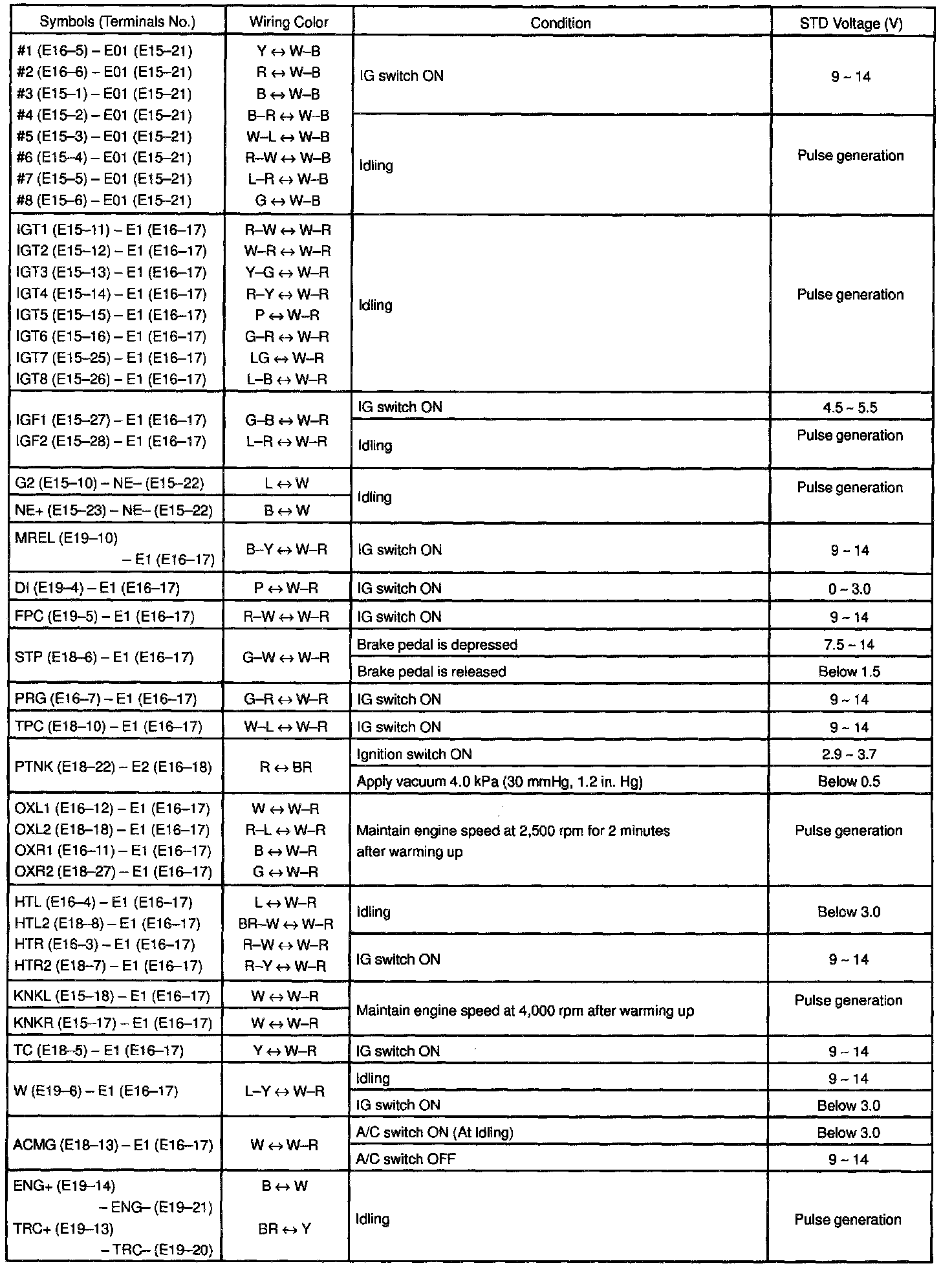 ECM Pinout Values Chart 3 Of 3: