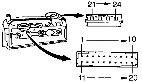 Connect the positive (+) lead from the battery terminal 21 and negative (-) terminal lead to 24 and then check that the illumination lights up.