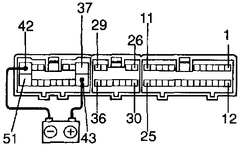 Connect the positive (+) lead from the battery to terminal 31 and negative (-) lead to terminal 43, then check that the illumination lights up.