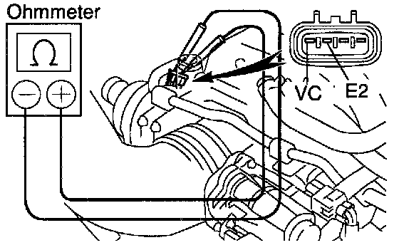 (b) Using an ohmmeter, measure the resistance between terminals VC and E2.
