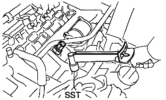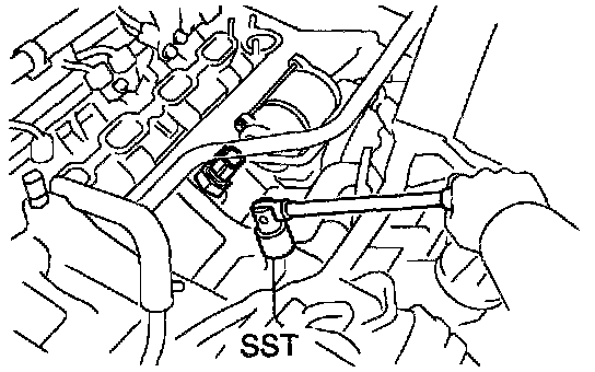 (b) Using SST, remove the 2 knock sensors. SST 09816-30010