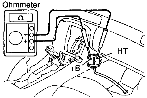 (c) Using an ohmmeter, measure the resistance between terminals +B and HT