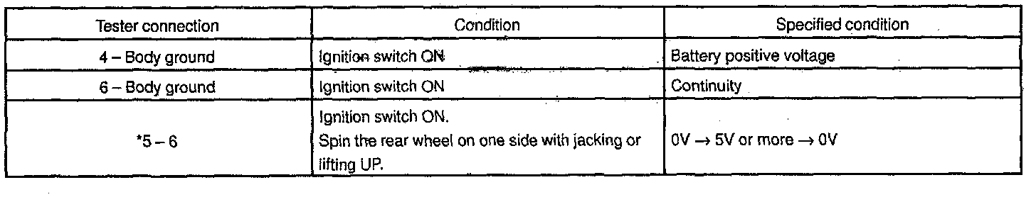 If the circuit is not as specified, inspect the speed sensor.