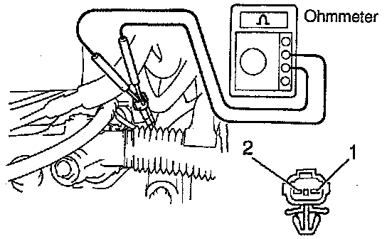 b. Measure the resistance between the terminals of the solenoid 1 and 2.