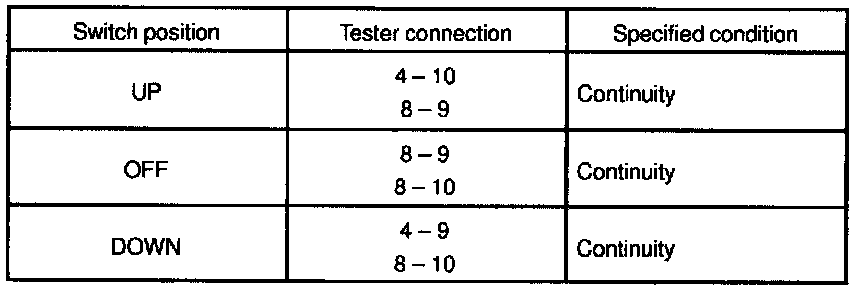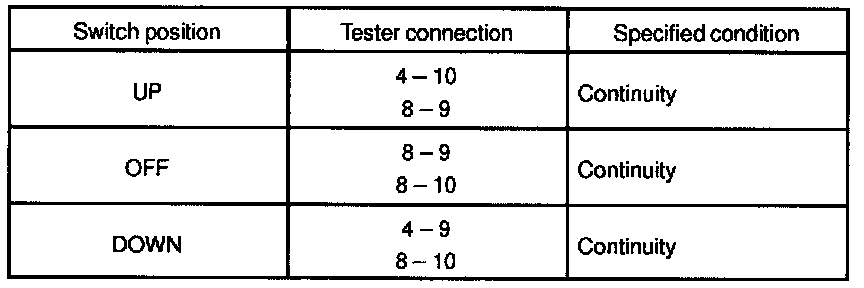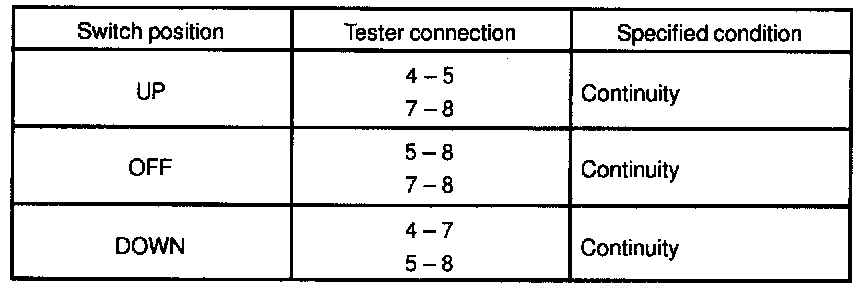 INSPECT POWER WINDOW SWITCH CONTINUITY