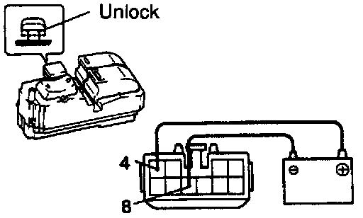 b. Connect the positive (+) lead from the battery to terminal 4 and the negative (-) lead to terminal 8, check that all the illuminations light up.