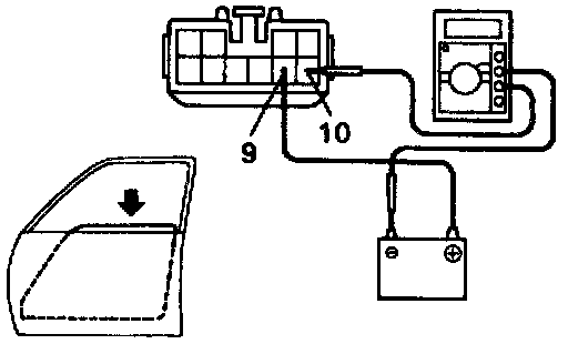 b. Connect the positive (+) lead from the ammeter to terminal 9 on the wire harness side connector and the negative (-) lead to the negative terminal of the battery.