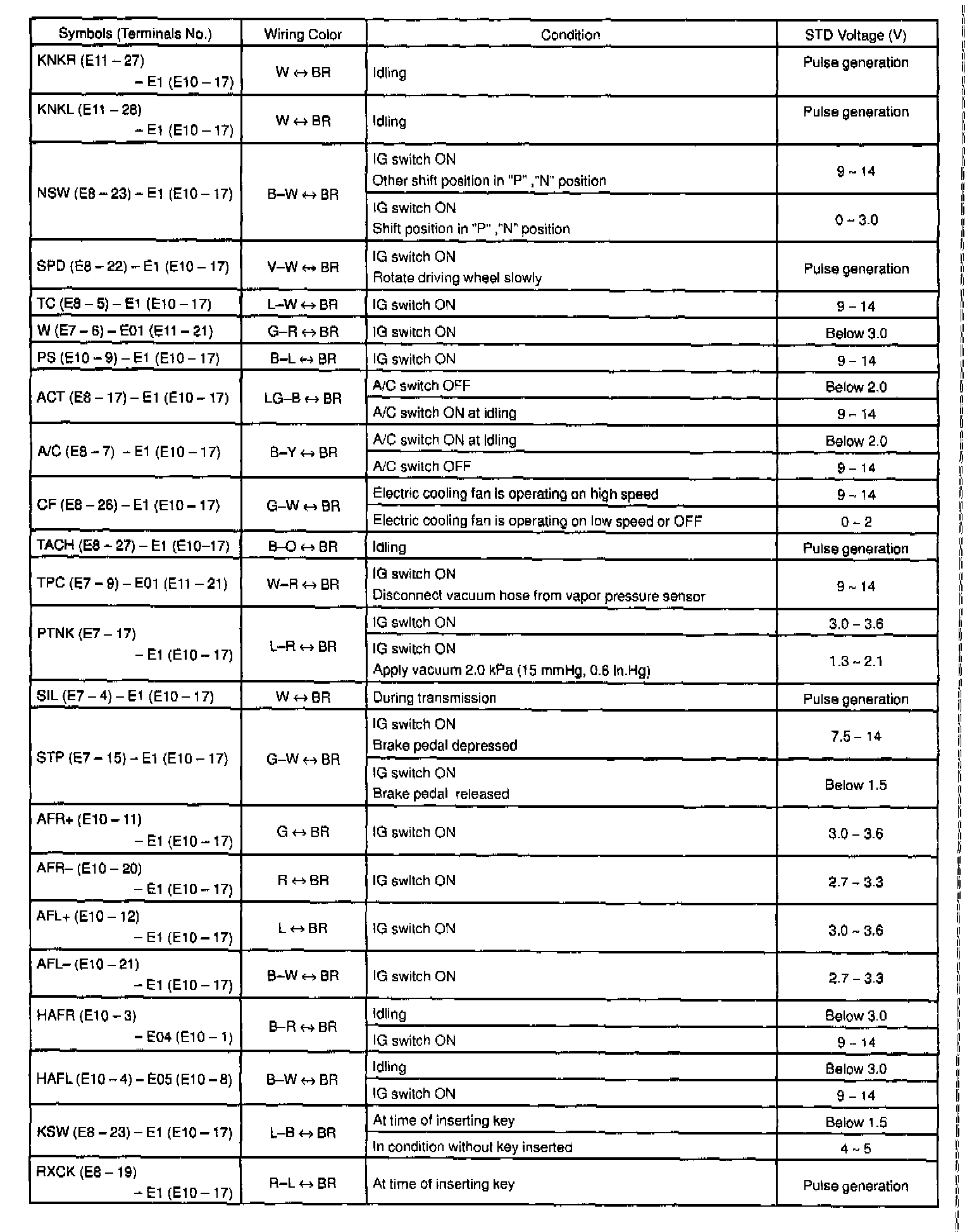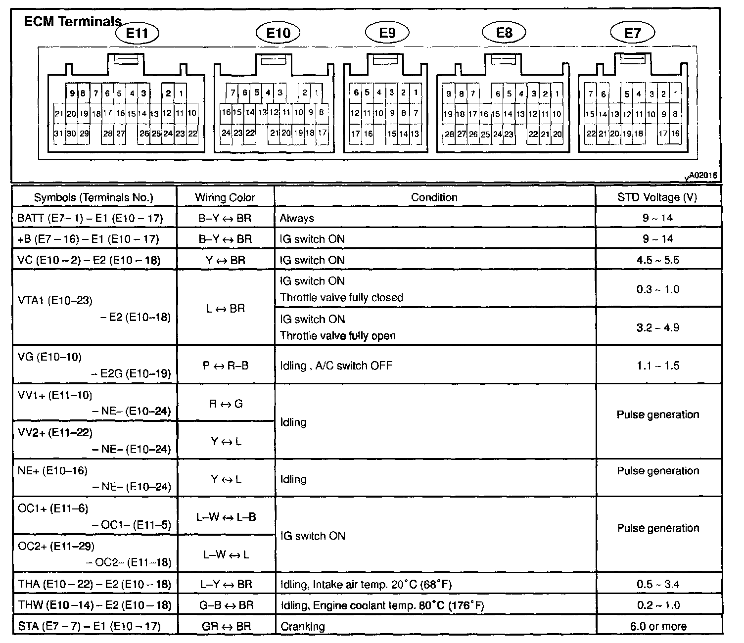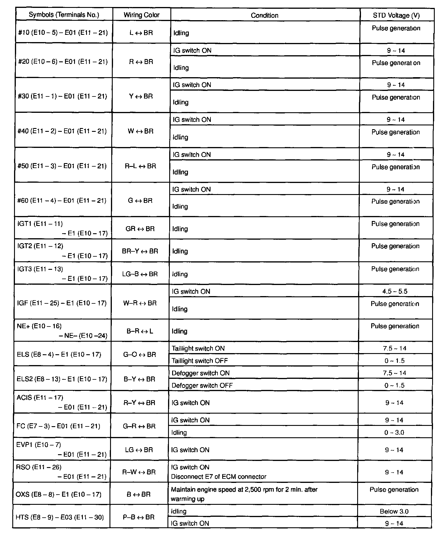 ECM Pin out Values
