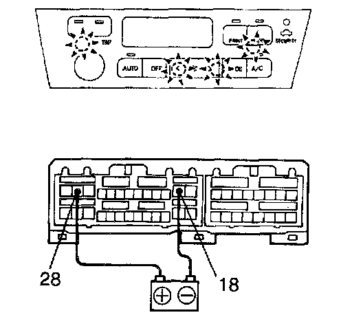 a. Connect the positive (+) lead from the battery to terminal 28 and the negative (-) lead to terminal 18, then check that the illumination lights up.