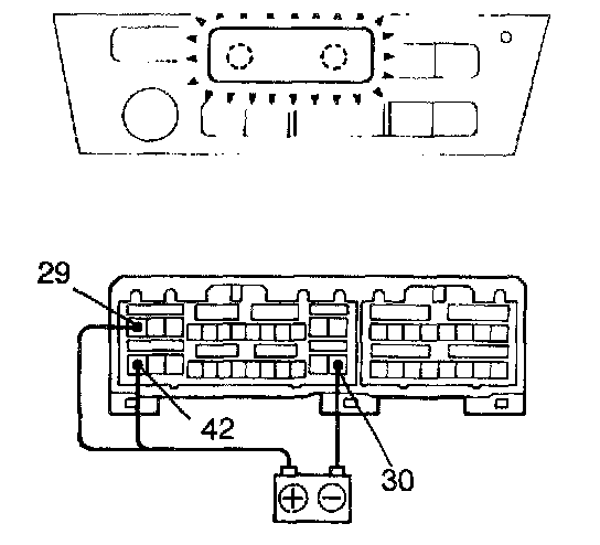 Connect the positive (+) lead from the battery to terminal 29, 42 and the negative (-) lead to terminal 30, then check that the illumination lights up.