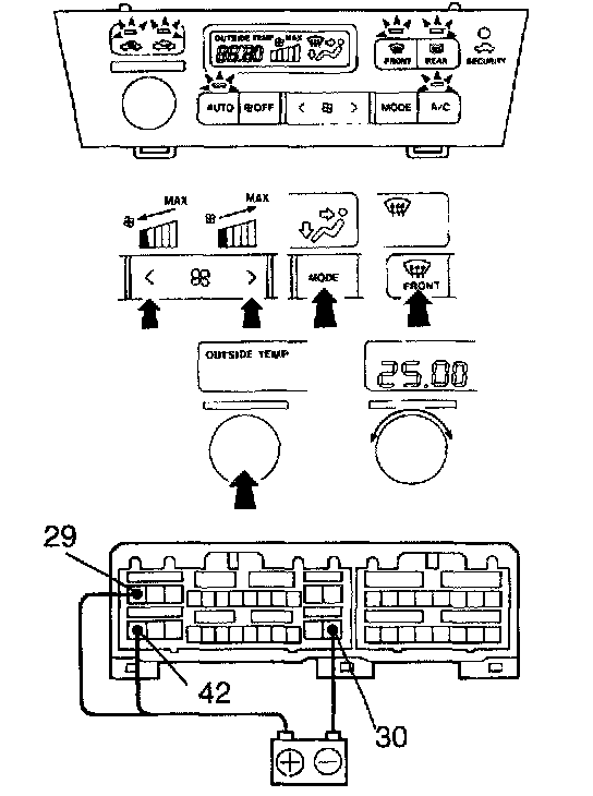 a. Connect the positive (+) lead from the battery to terminal 29, 42 and the negative (-) lead to terminal 30.