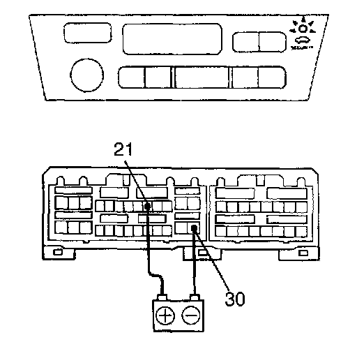 Connect the positive (+) lead from the battery to terminal 21 and negative (-) lead to terminal 30, then check that the indicator light up.