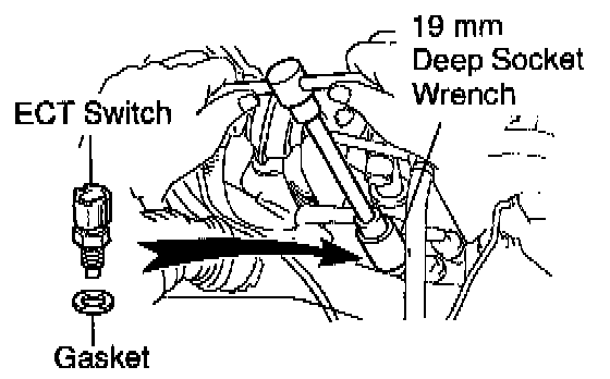 b. Using a 19 mm deep socket, install the ECT sensor.